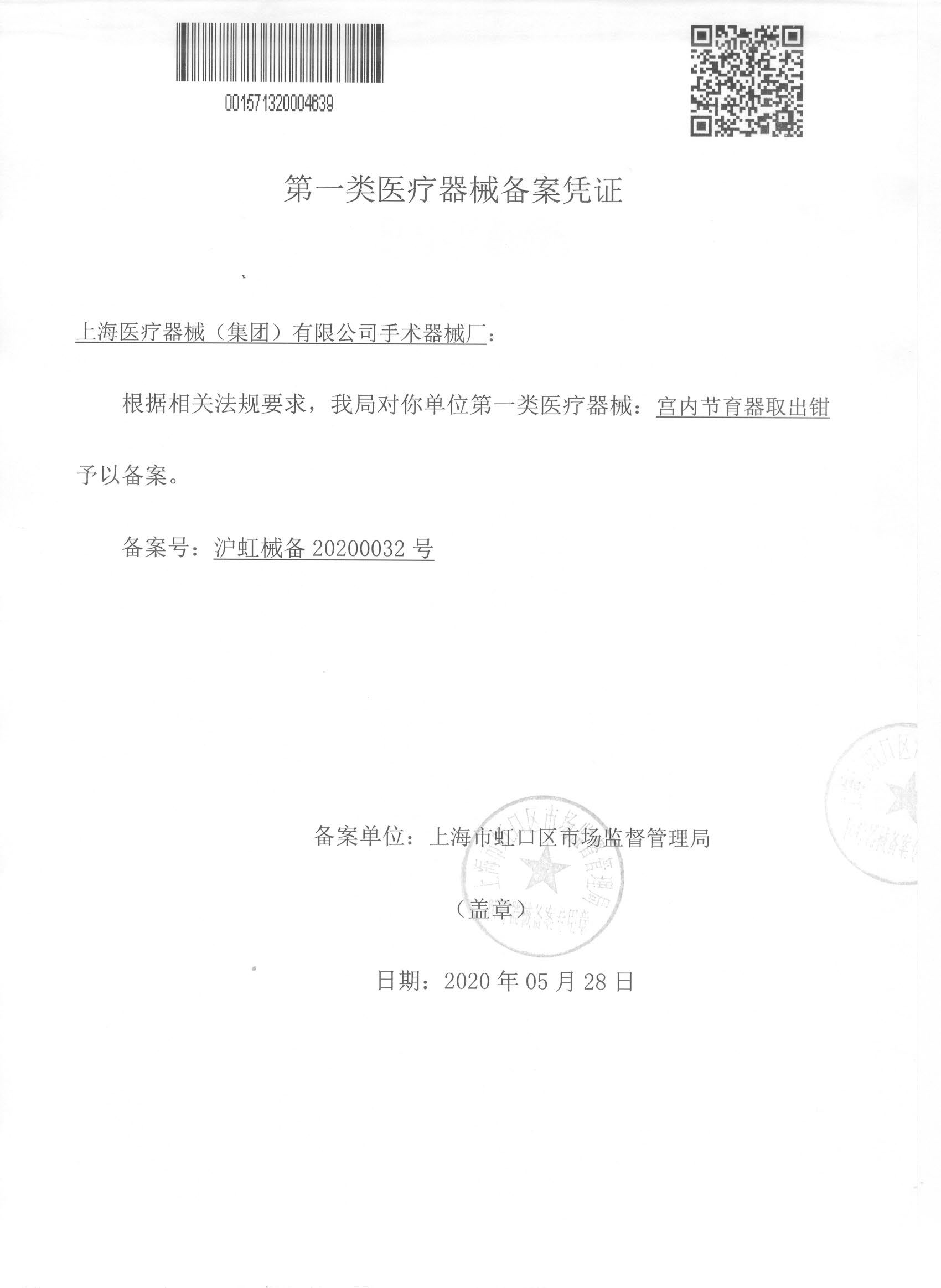 - 產(chǎn)品注冊證號:滬虹械備 20150235號