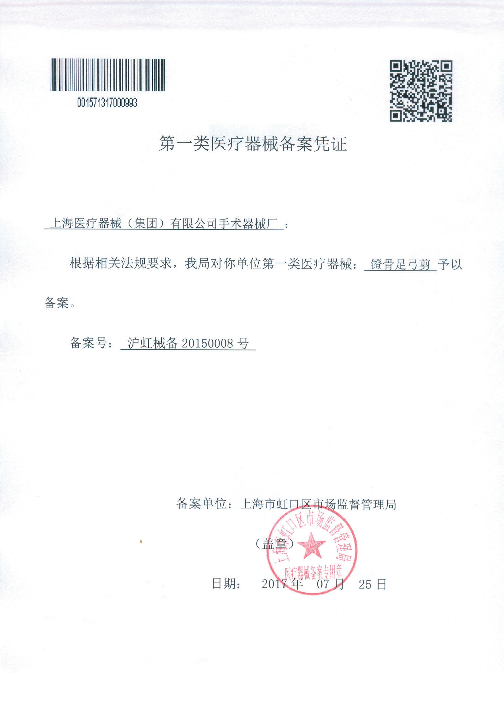 - 產(chǎn)品注冊證號:滬虹械備20150008號