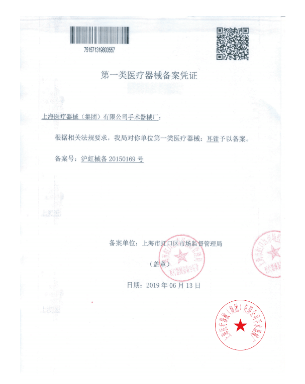 - 生產(chǎn)企業(yè):上海醫(yī)療器械(集團(tuán))有限公司手術(shù)器械廠(金鐘)