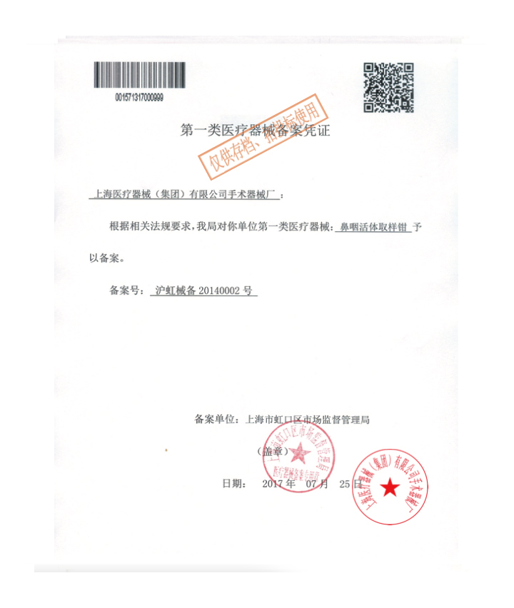 - 生產(chǎn)企業(yè):上海醫(yī)療器械(集團)有限公司手術(shù)器械廠(金鐘)