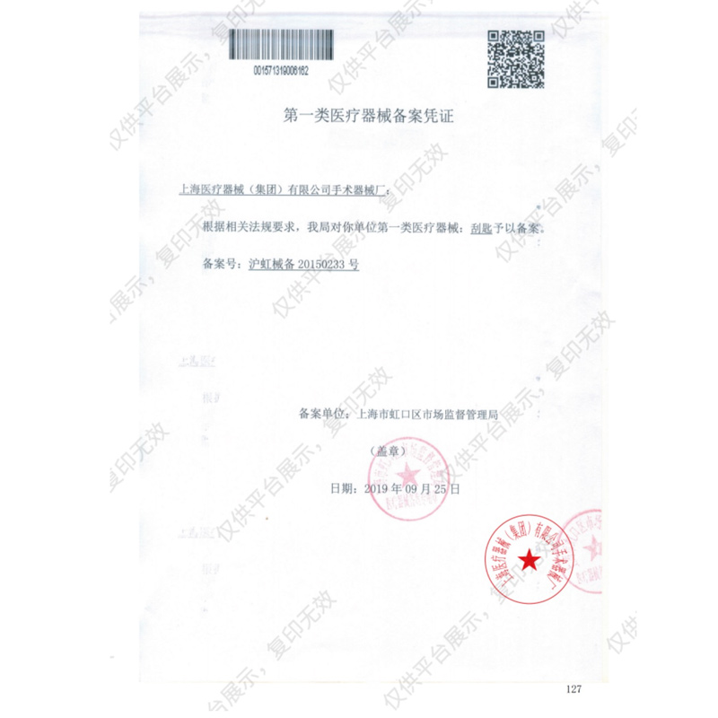 - 產(chǎn)品注冊證號:滬虹械備20150233號