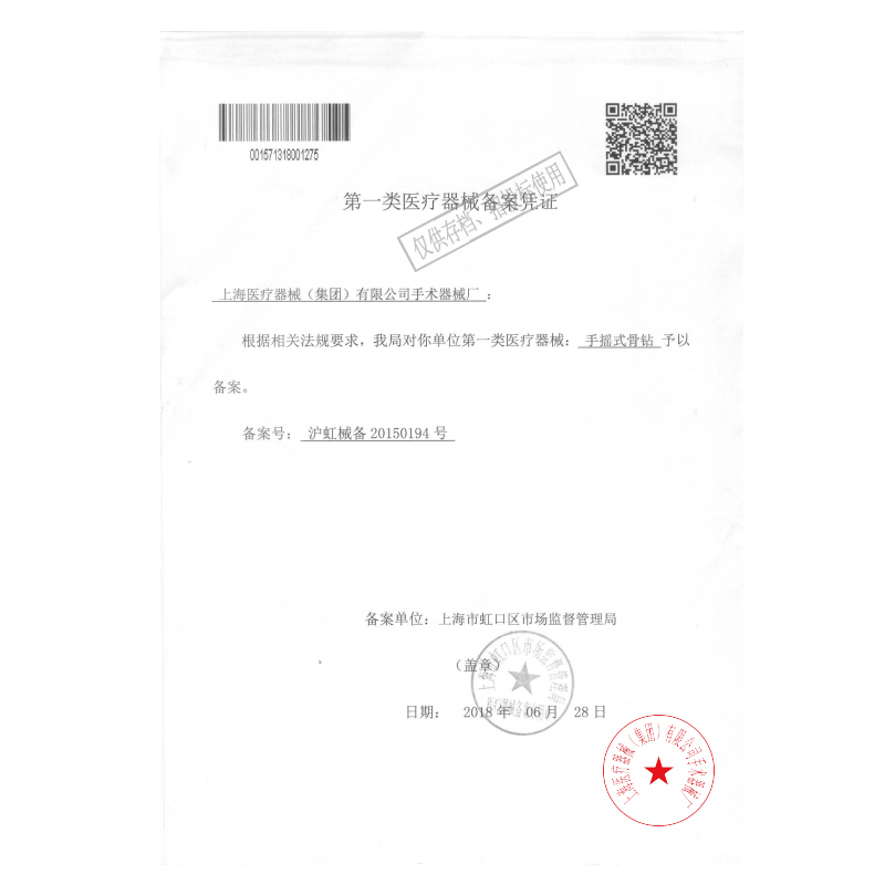 - 產(chǎn)品注冊證號:滬虹械備 20150194 號