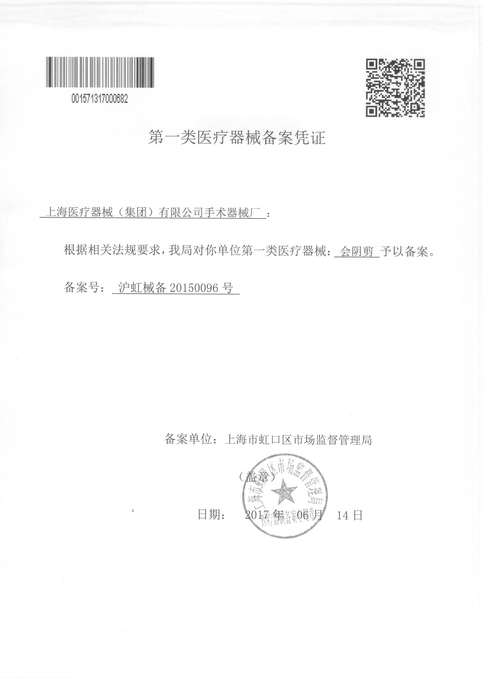 - 產(chǎn)品注冊證號:滬虹械備 20150096號