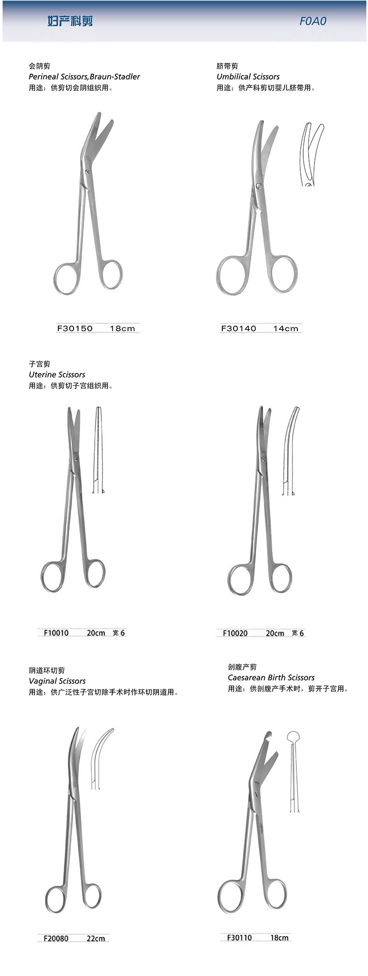 “上海金鐘牌” F0B0 婦產(chǎn)科剪 產(chǎn)品表