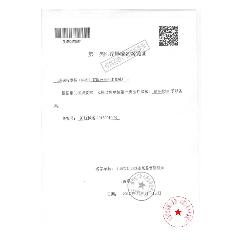 - 產品注冊證號:滬虹械備20160010號