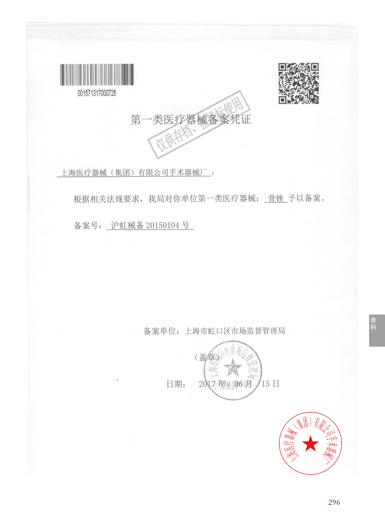 - 產(chǎn)品注冊證號:滬虹械備20150104號