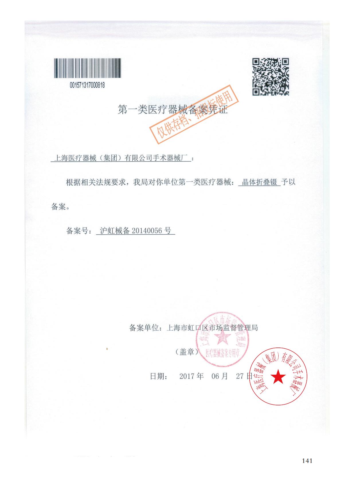 - 產(chǎn)品注冊(cè)證號(hào):滬虹械備20140056號(hào)