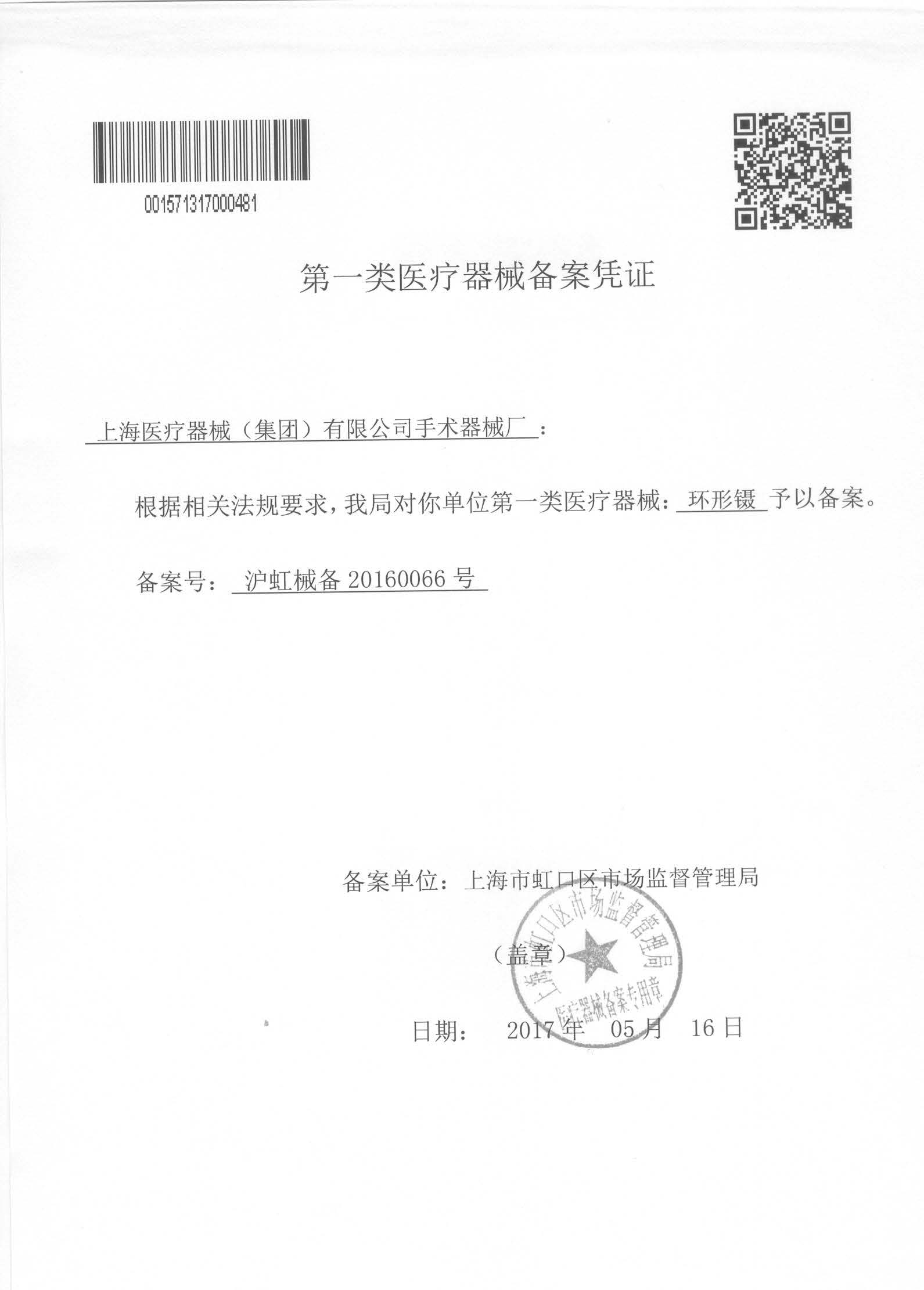 - 產(chǎn)品注冊證號:滬虹械備 20160166號