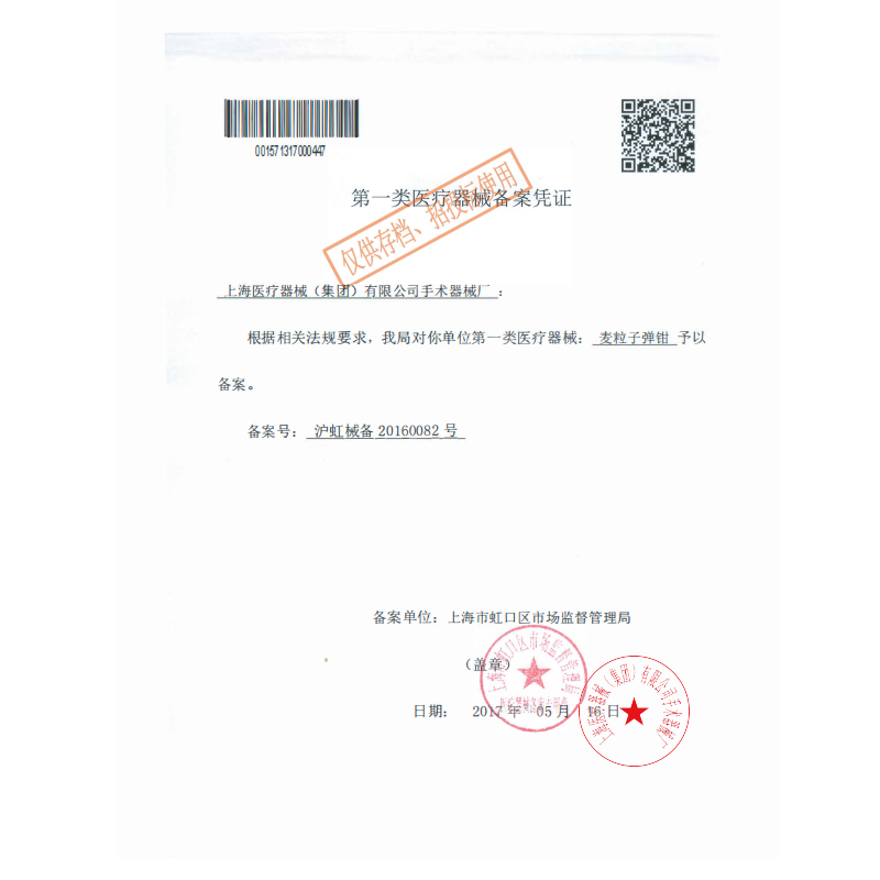 - 產(chǎn)品注冊(cè)證號(hào):滬虹械備20160082號(hào)