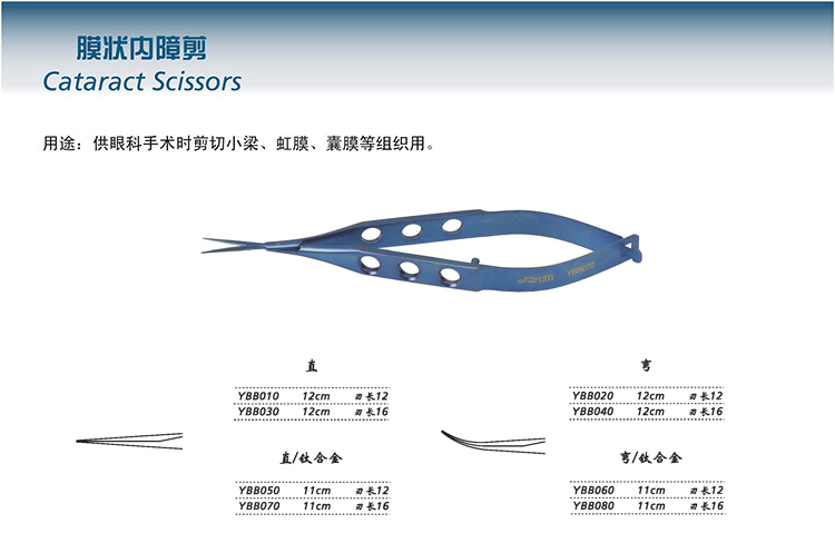 金鐘膜狀內(nèi)障剪 YBB050 11cm 直 刃長 12(鈦)