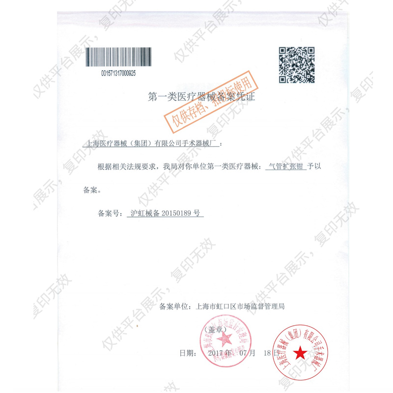 - 產(chǎn)品注冊證號:滬虹械備20150189號
