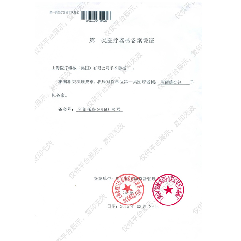 - 產(chǎn)品結(jié)構(gòu)及組成:由手術(shù)刀柄(1件)、手術(shù)剪(2件)、止血鉗(2件)、持針鉗(1件)、組織鑷(1件)、醫(yī)用鑷(1件),共6個品種,8件組件組成。器械包內(nèi)組件均為第一類醫(yī)療器械,且已備案。器械包可重復(fù)使用,器械包非無菌提供。