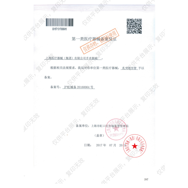 - 產(chǎn)品注冊(cè)證號(hào):滬虹械備20160064號(hào)