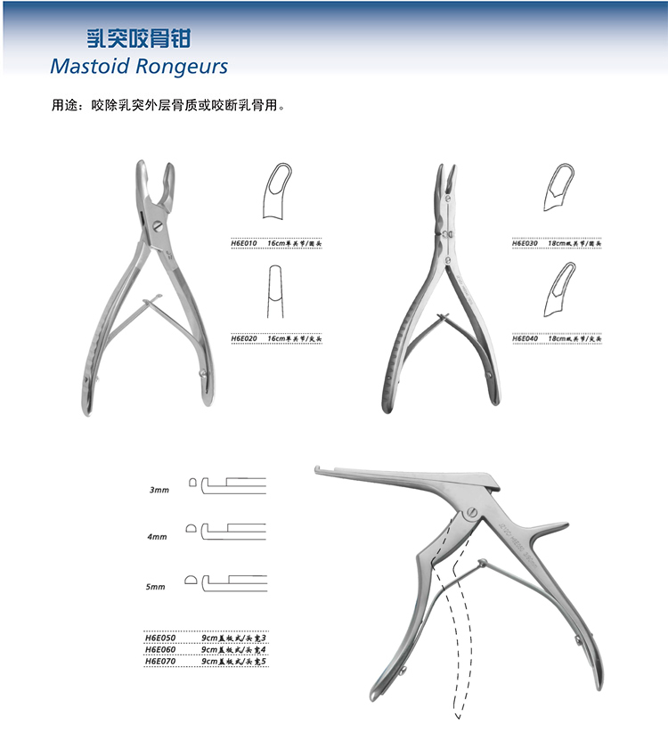 金鐘乳突咬骨鉗 H6E010 16cm 單關(guān)節(jié) 圓頭