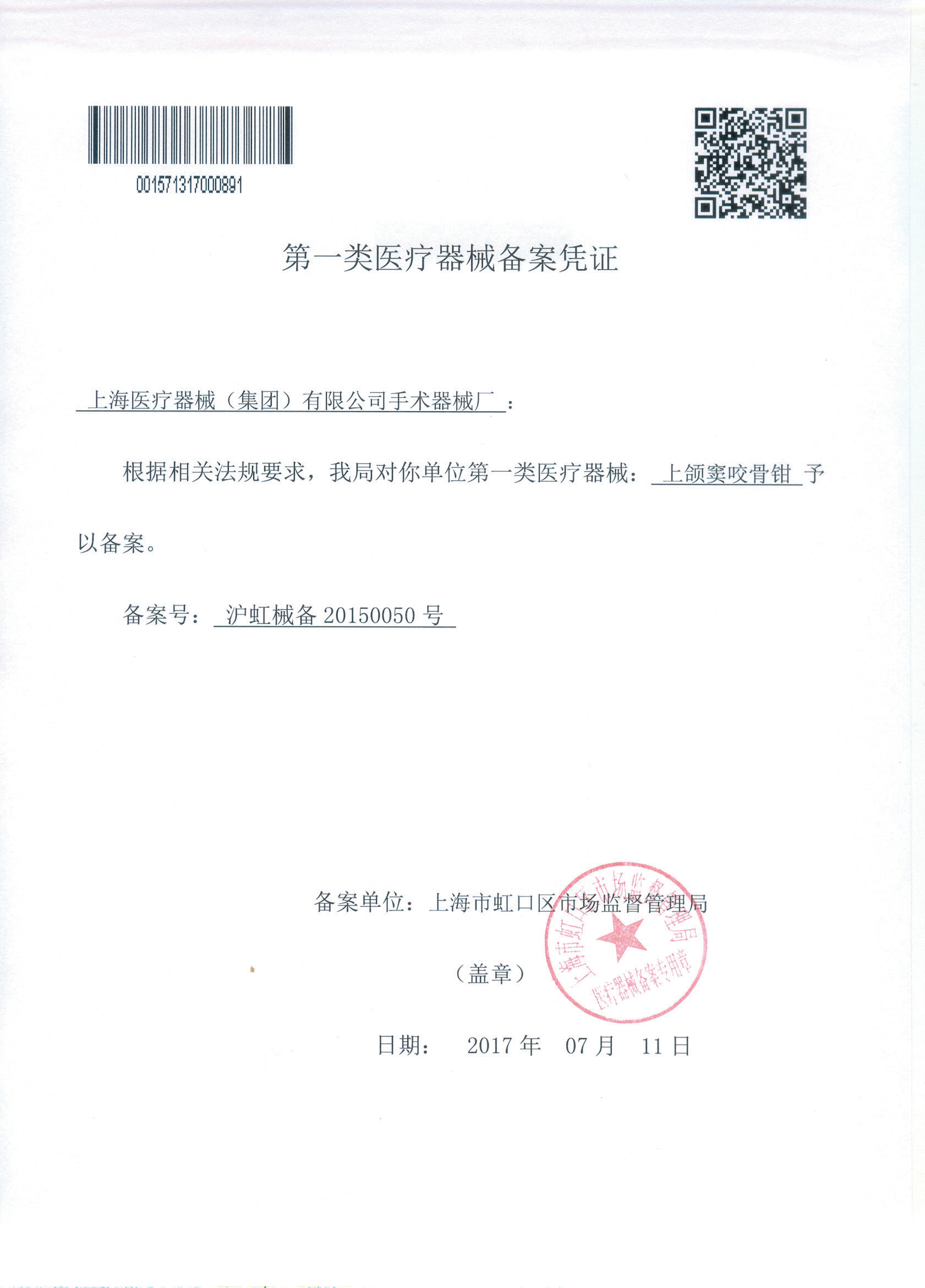 - 產(chǎn)品注冊(cè)證號(hào):滬虹械備20150050號(hào)