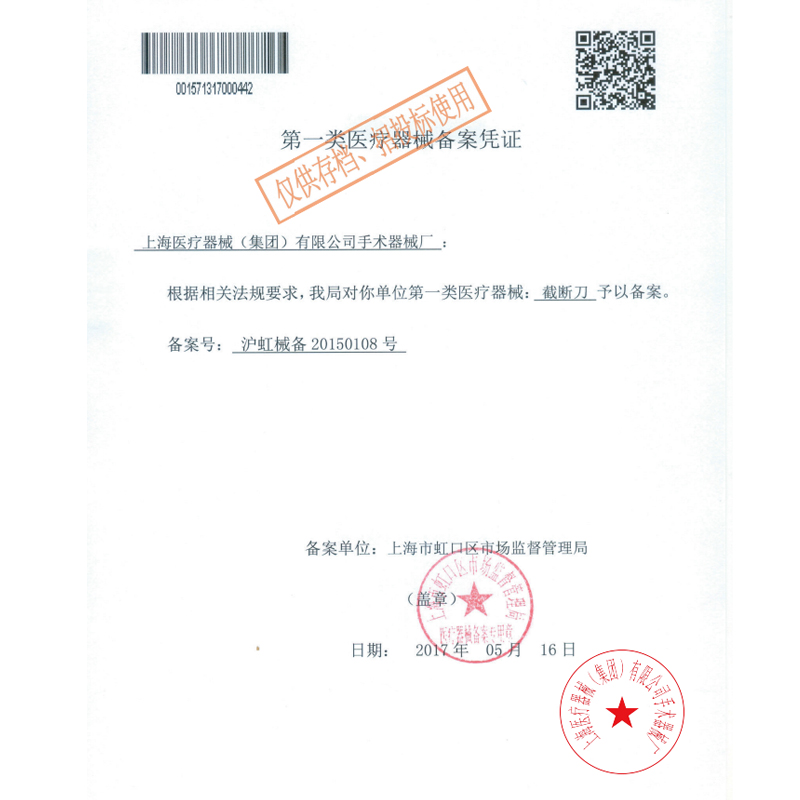 - 產(chǎn)品注冊(cè)證號(hào):滬虹械備20150108號(hào)