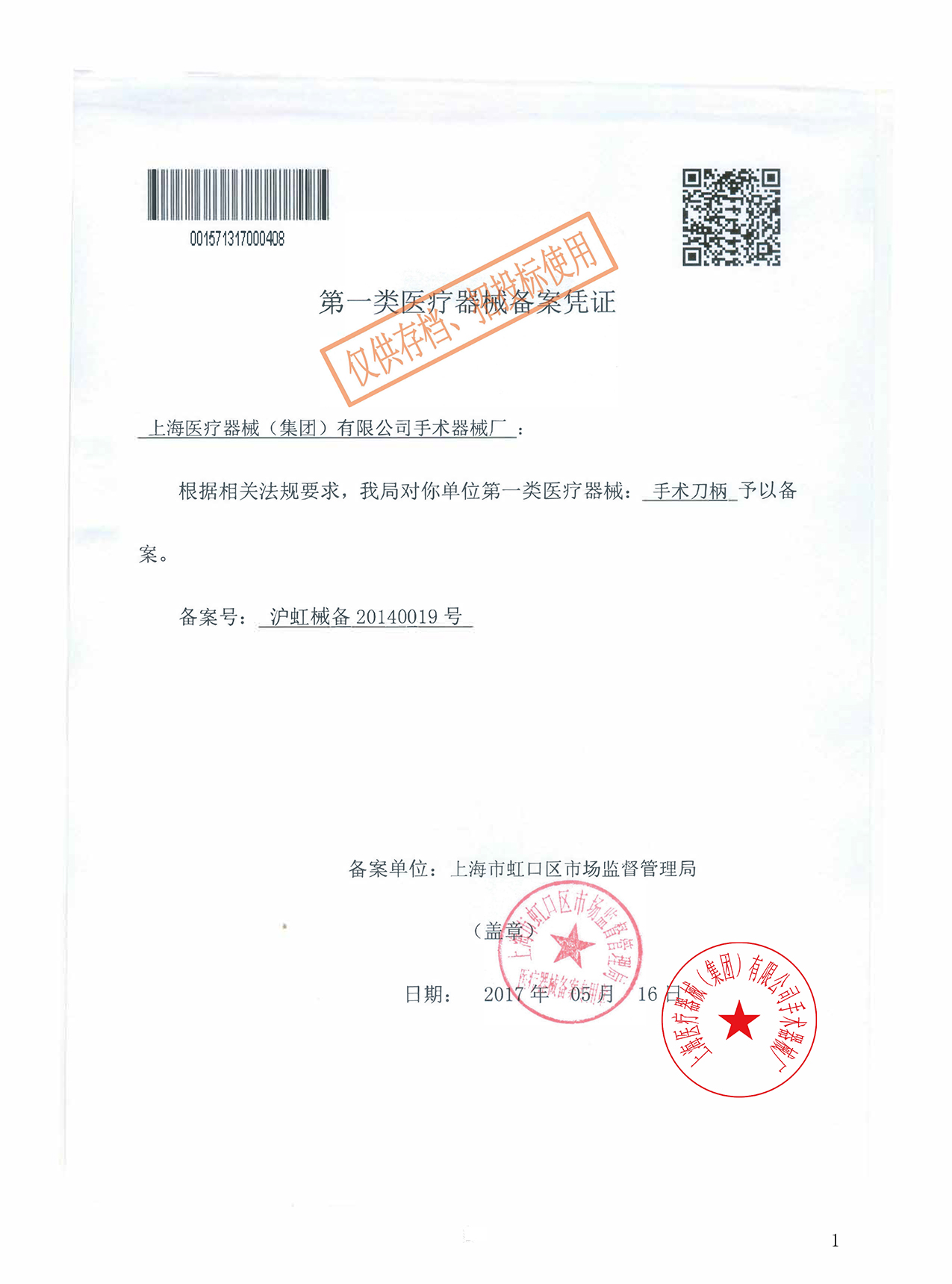- 產(chǎn)品注冊證號:滬虹械備20140019號