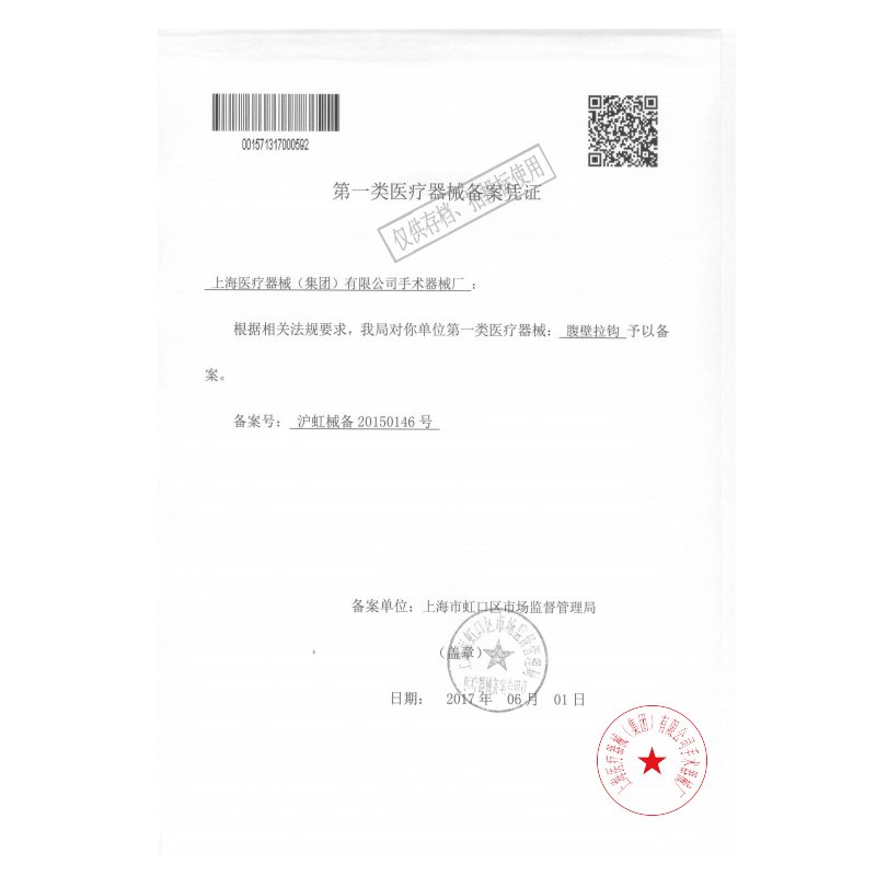 - 產(chǎn)品注冊證號:滬虹械備20150146號