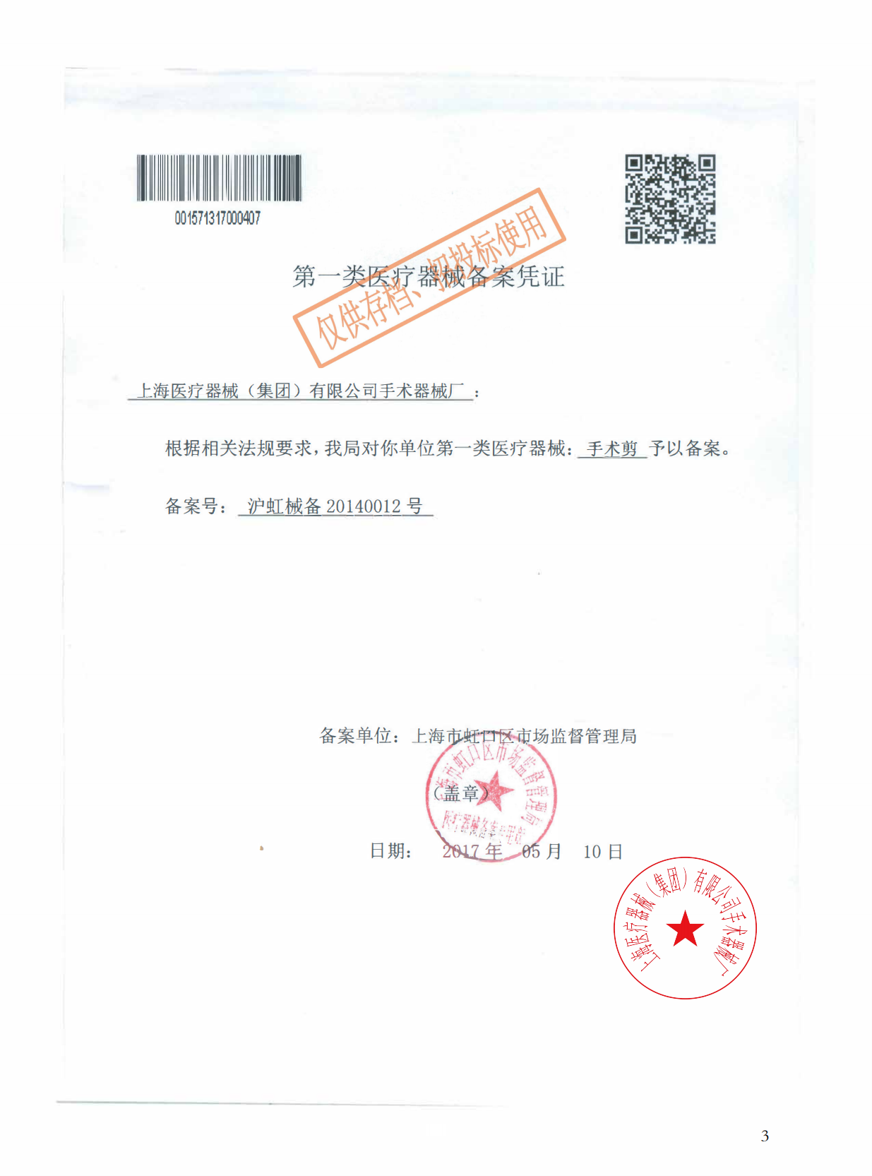 - 產(chǎn)品注冊證號:滬虹械備20140012號