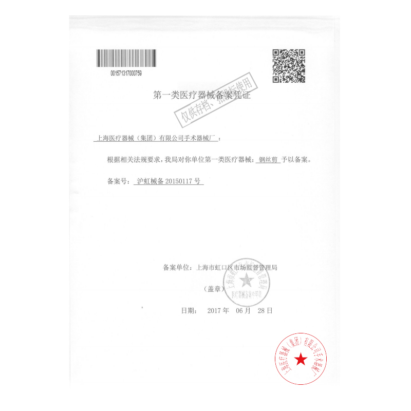 - 生產(chǎn)企業(yè):上海醫(yī)療器械(集團(tuán))有限公司手術(shù)器械廠(金鐘)