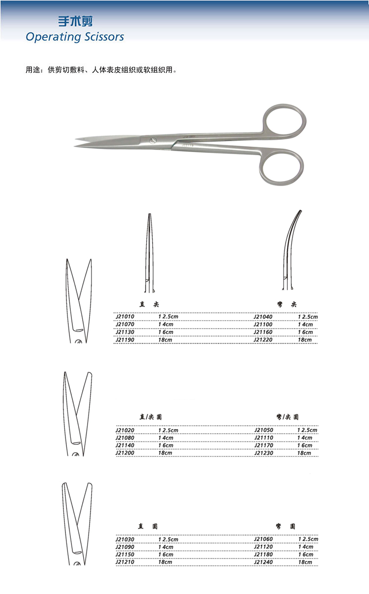 - 產(chǎn)品適用范圍:用于剪切人體組織、皮膚