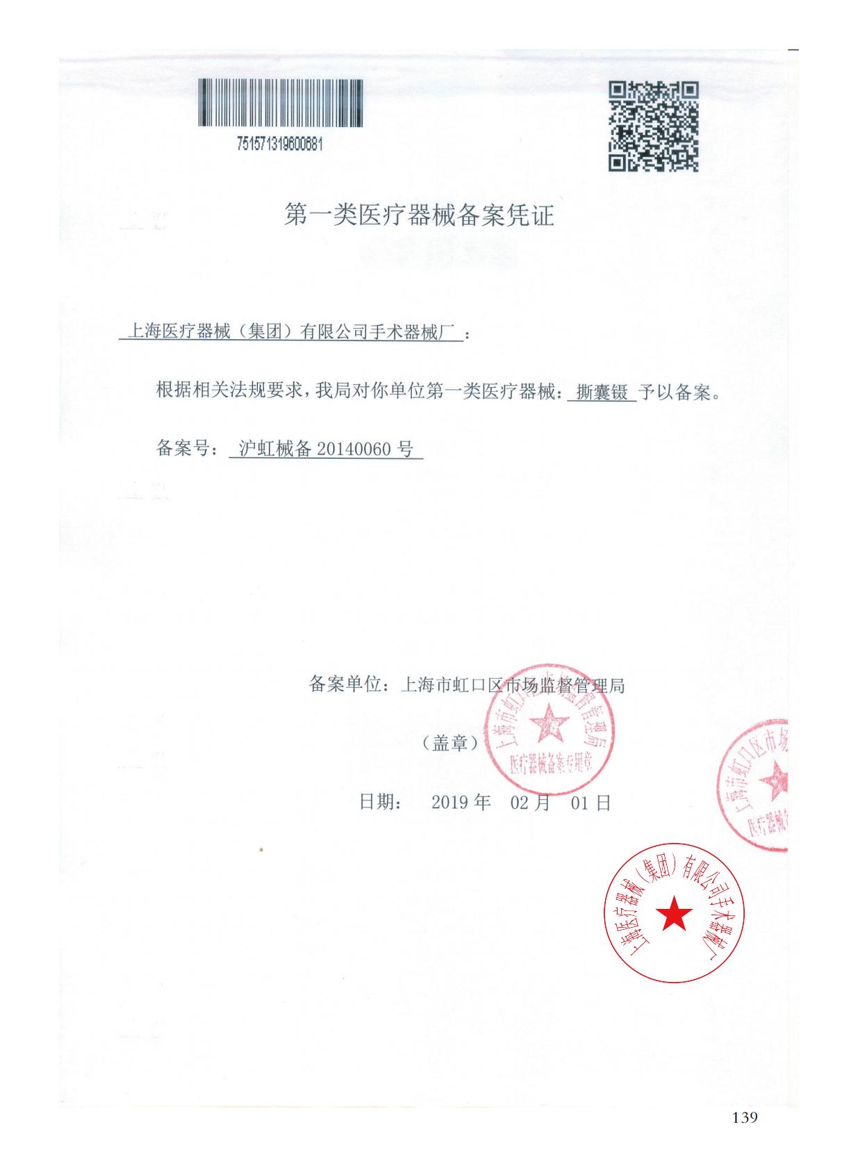 - 產(chǎn)品注冊證號:滬虹械備20140060號