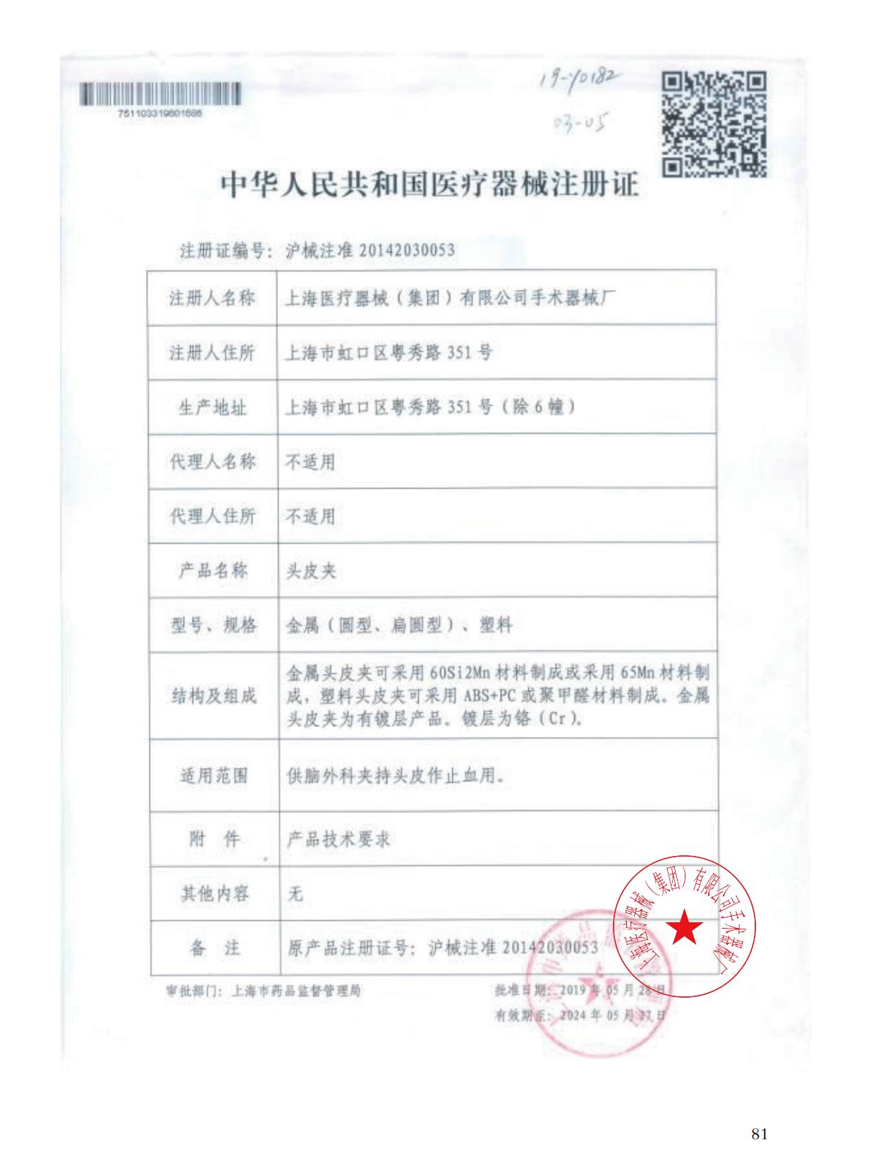 - 生產企業(yè):上海手術器械廠