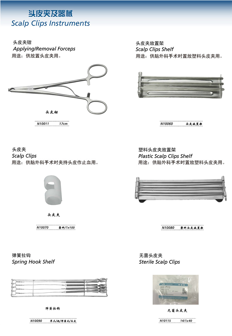 - 產品適用范圍:供腦外科夾持頭皮作止血用。