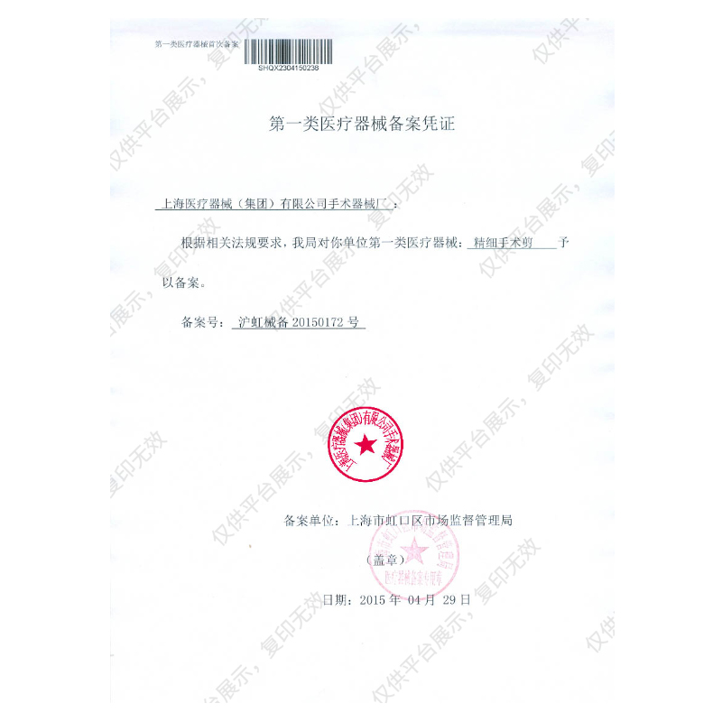 - 產(chǎn)品注冊(cè)證號(hào):滬虹械備20150172號(hào)