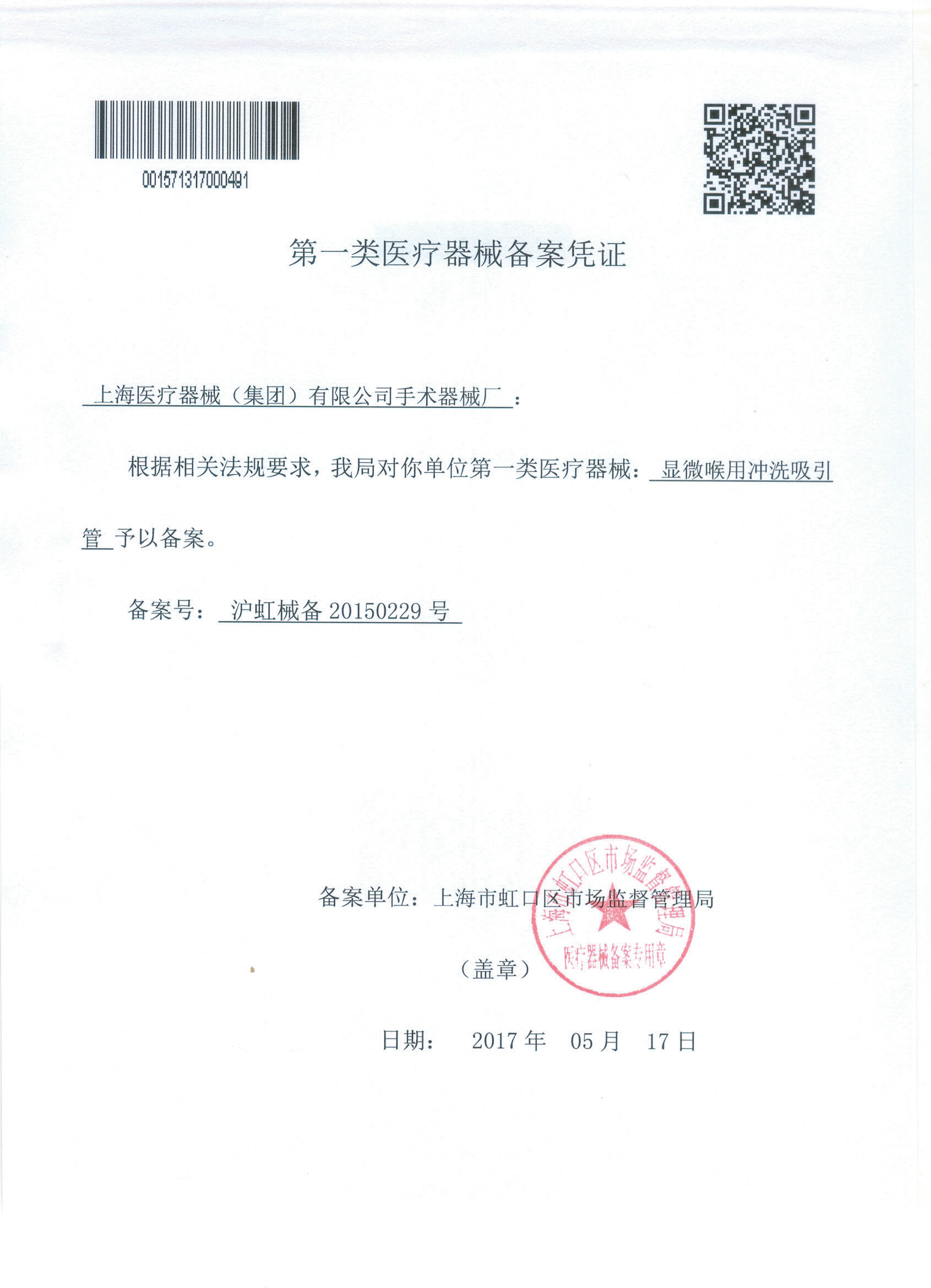 - 產(chǎn)品注冊(cè)證號(hào):滬虹械備20150229號(hào)