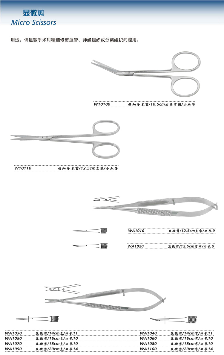 - 產(chǎn)品適用范圍:用于顯微手術(shù)時(shí)精細(xì)修剪組織。