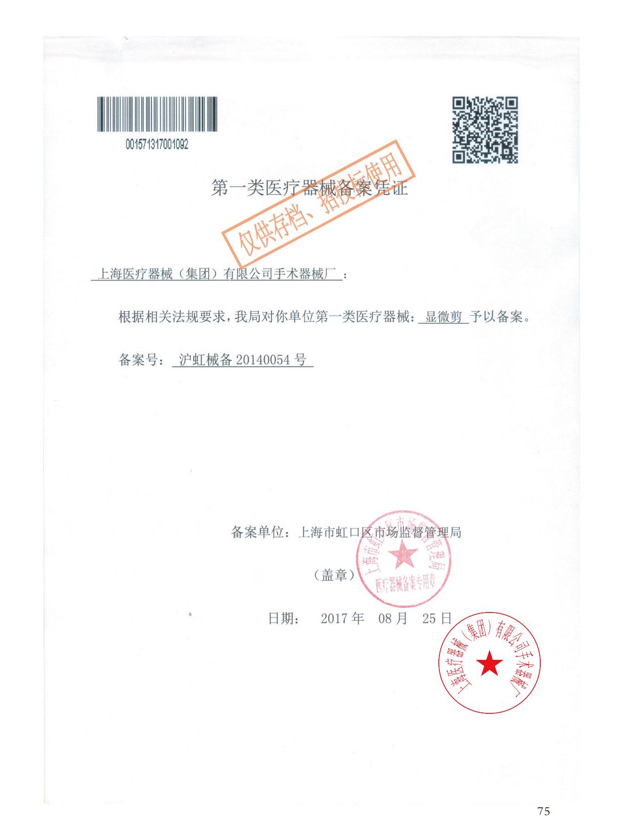 - 產(chǎn)品注冊(cè)證號(hào):滬虹械備20140054號(hào)