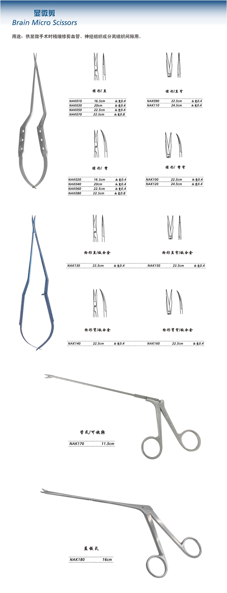 金鐘 顯微剪 NAK090 22.5cm 槍形 直窄 頭寬0.4