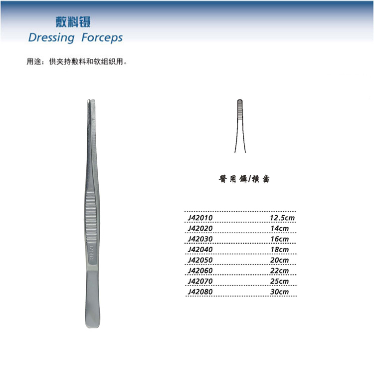 金鐘 醫(yī)用鑷 J42055 20cm 橫齒(敷料)