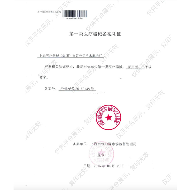 - 產(chǎn)品注冊證號:滬虹械備20150138號