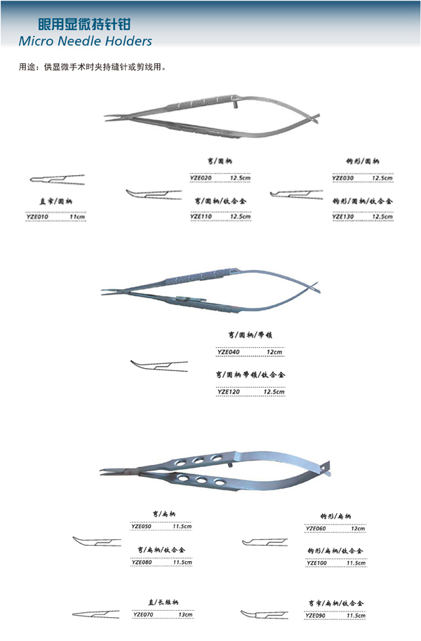 金鐘 顯微眼用持針鉗 YZE050 11.5cm 彎 扁柄