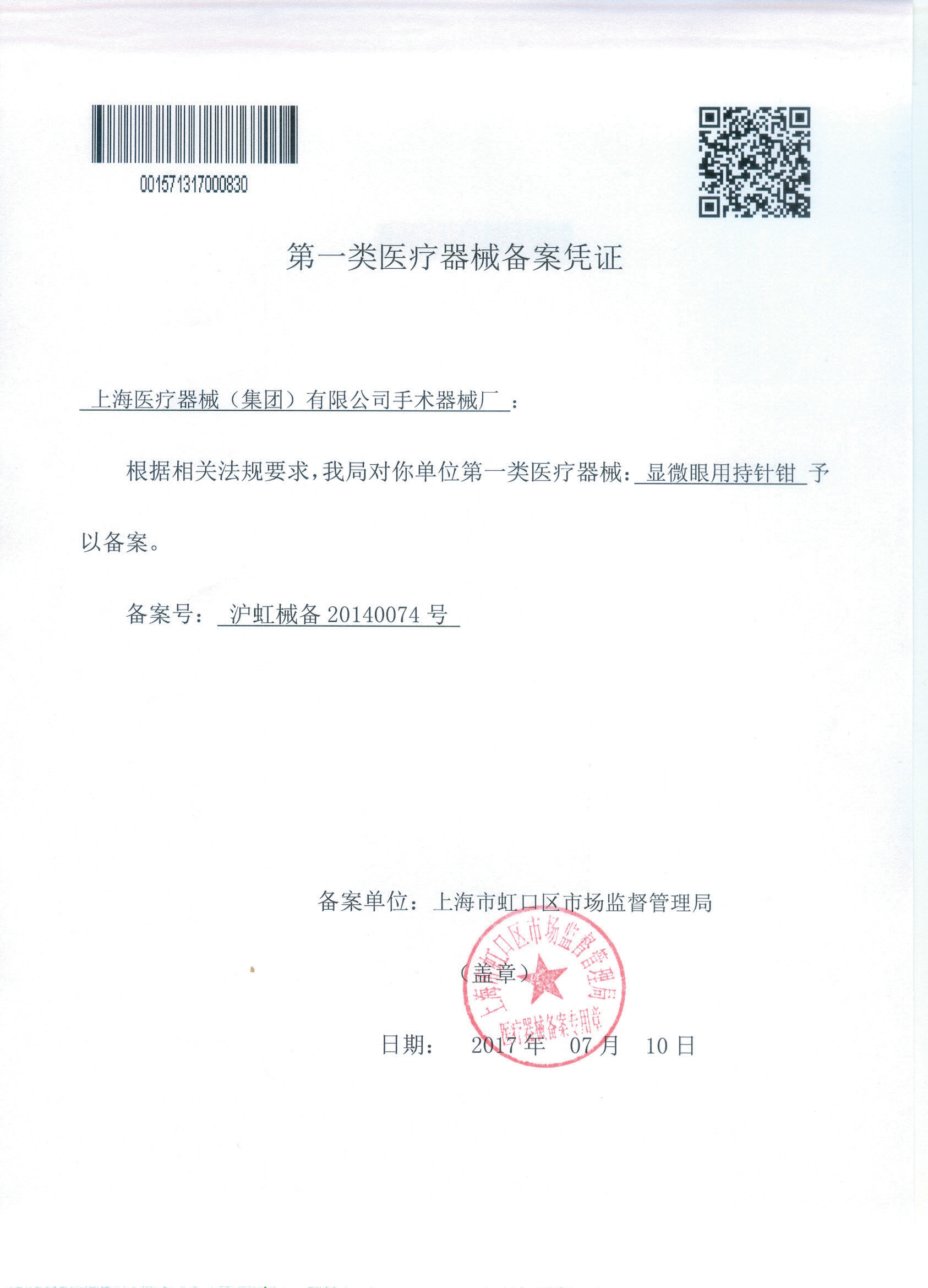 - 產(chǎn)品注冊(cè)證號(hào):滬虹械備20140074號(hào)