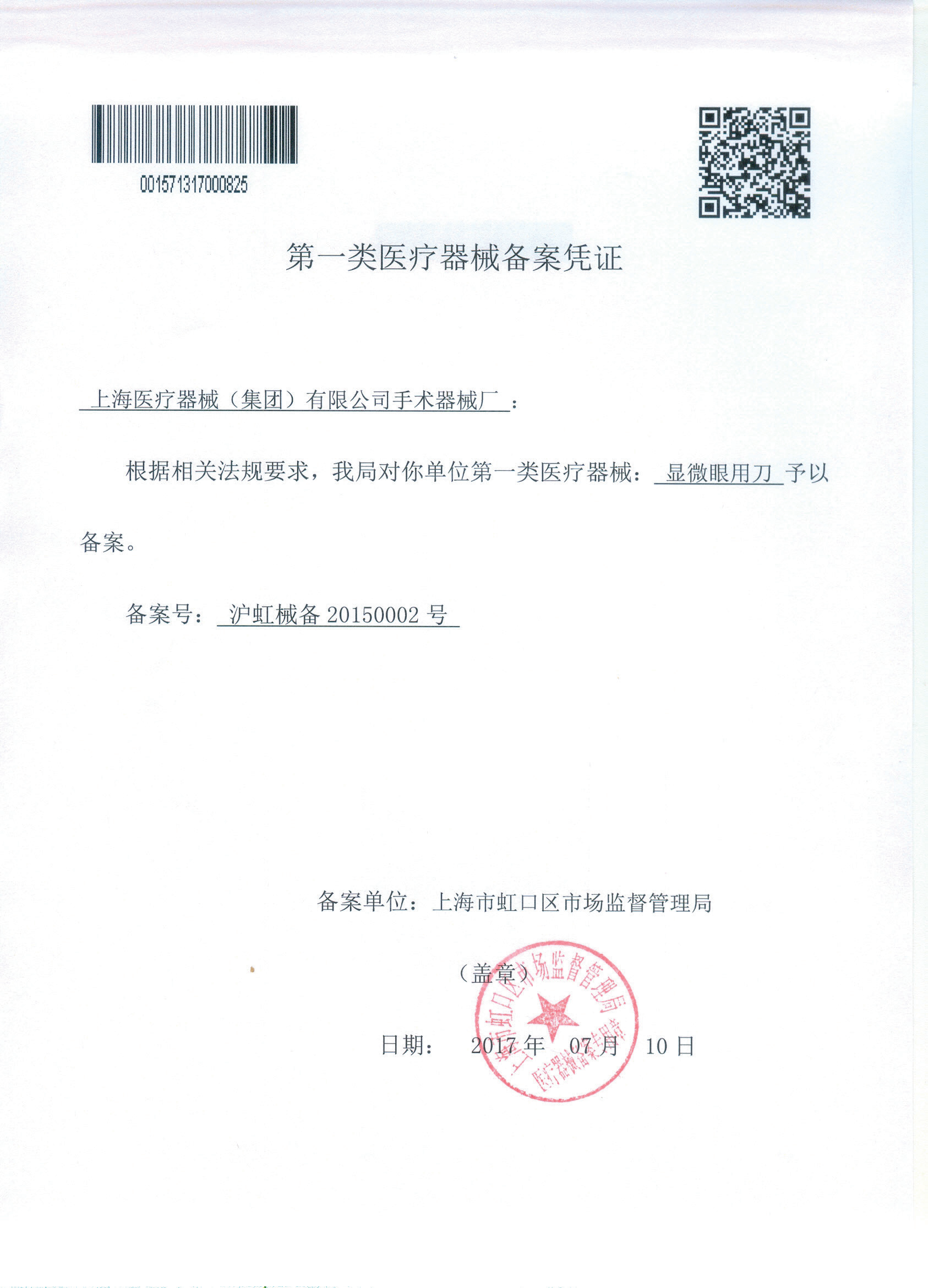 - 產(chǎn)品注冊(cè)證號(hào):滬虹械備20150002號(hào)