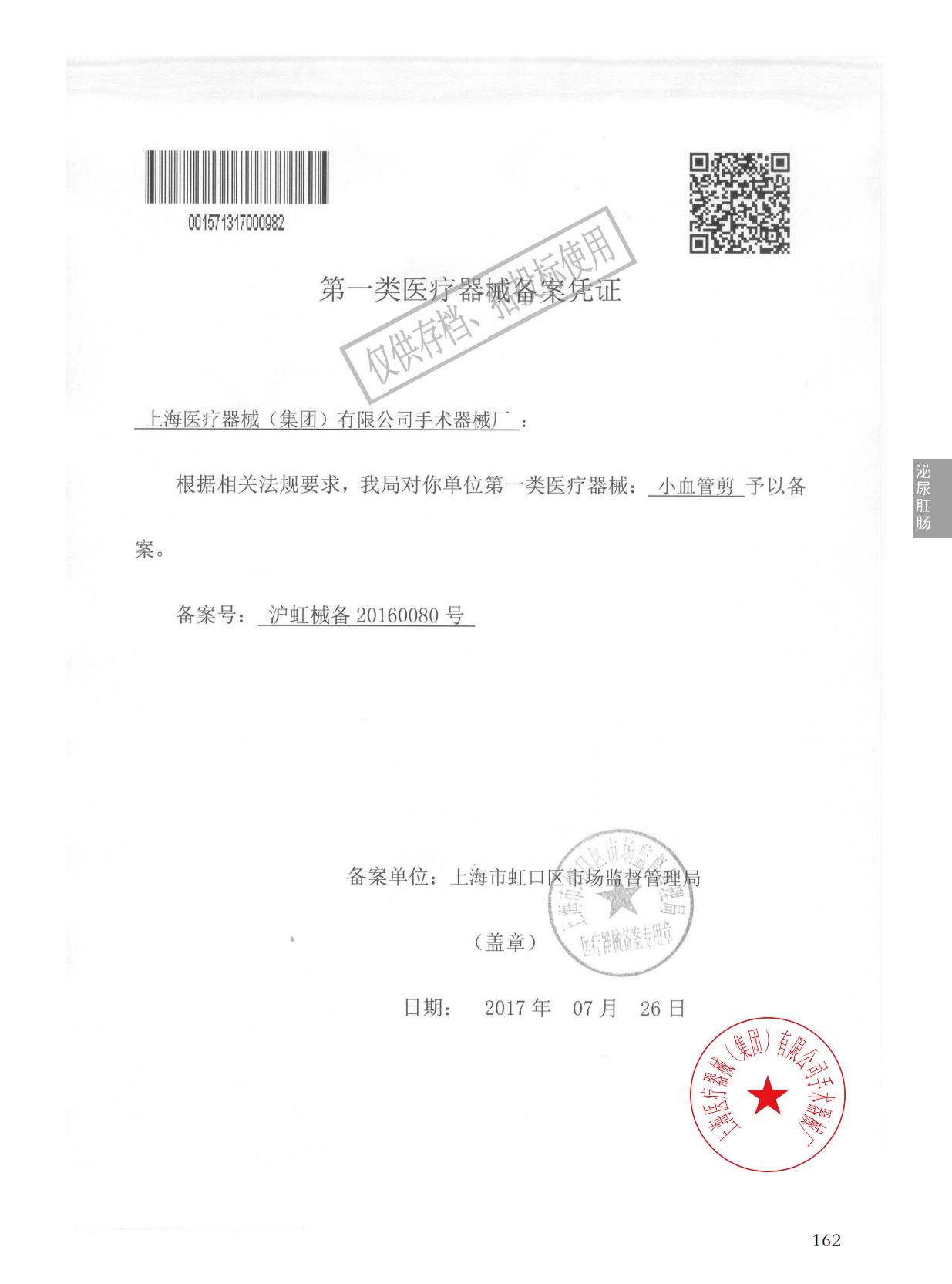 - 產(chǎn)品注冊(cè)證號(hào):滬虹械備20160080號(hào)