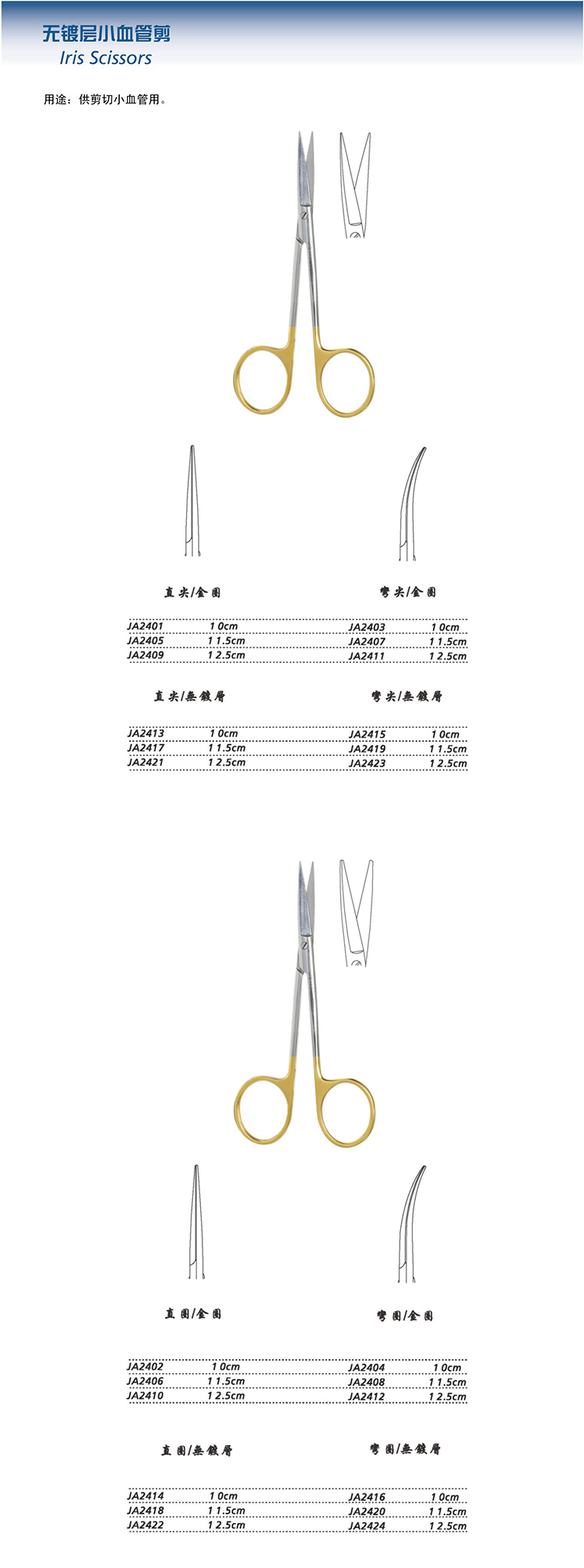 金鐘小血管剪直尖 JA2417 11.5cm 直尖