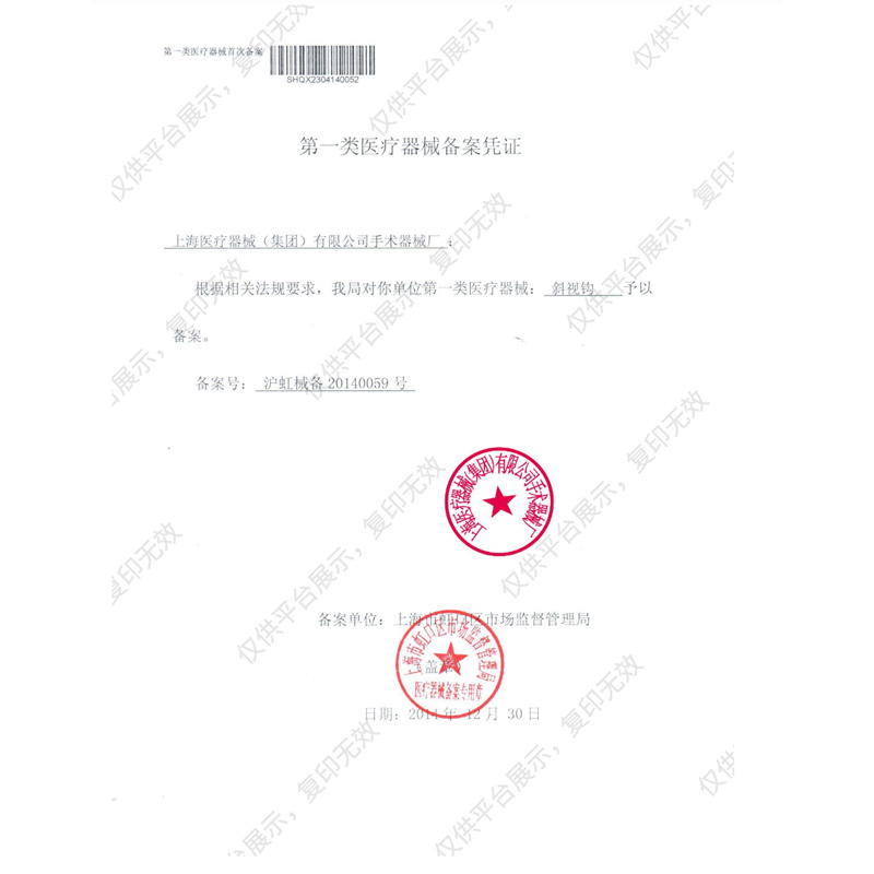 - 產(chǎn)品注冊證號:滬虹械備20140059號