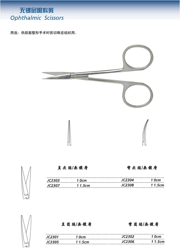 金鐘 眼用剪 JC2301 10cm 直圓頭WD