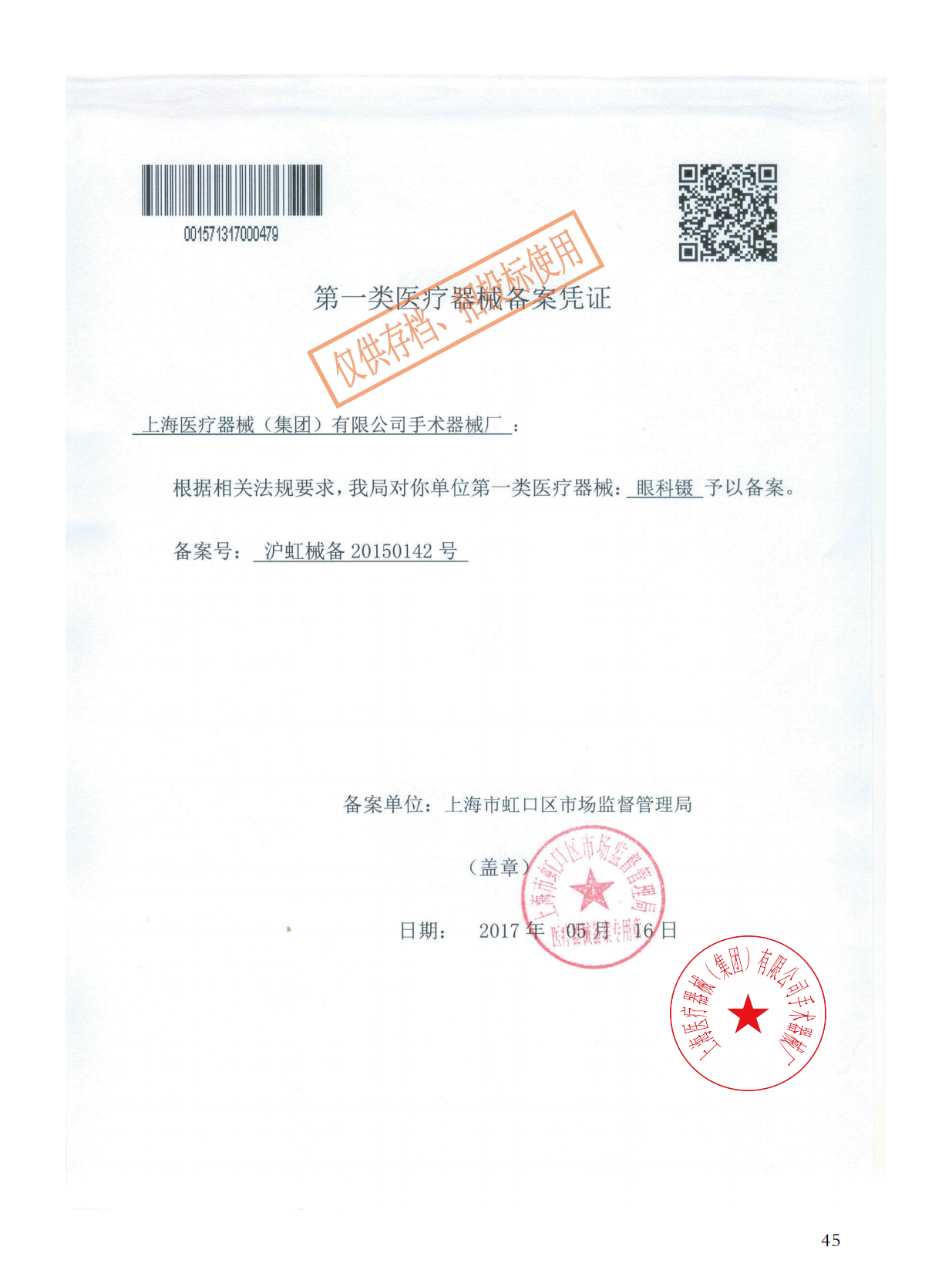 - 產(chǎn)品注冊證號:滬虹械備20150142號