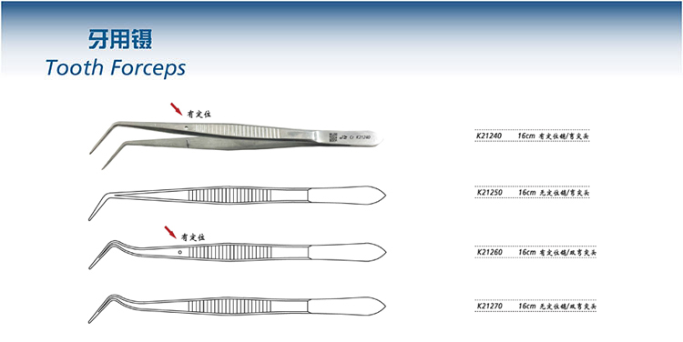 金鐘牙用鑷K21240 16cm 有定位銷 彎尖頭