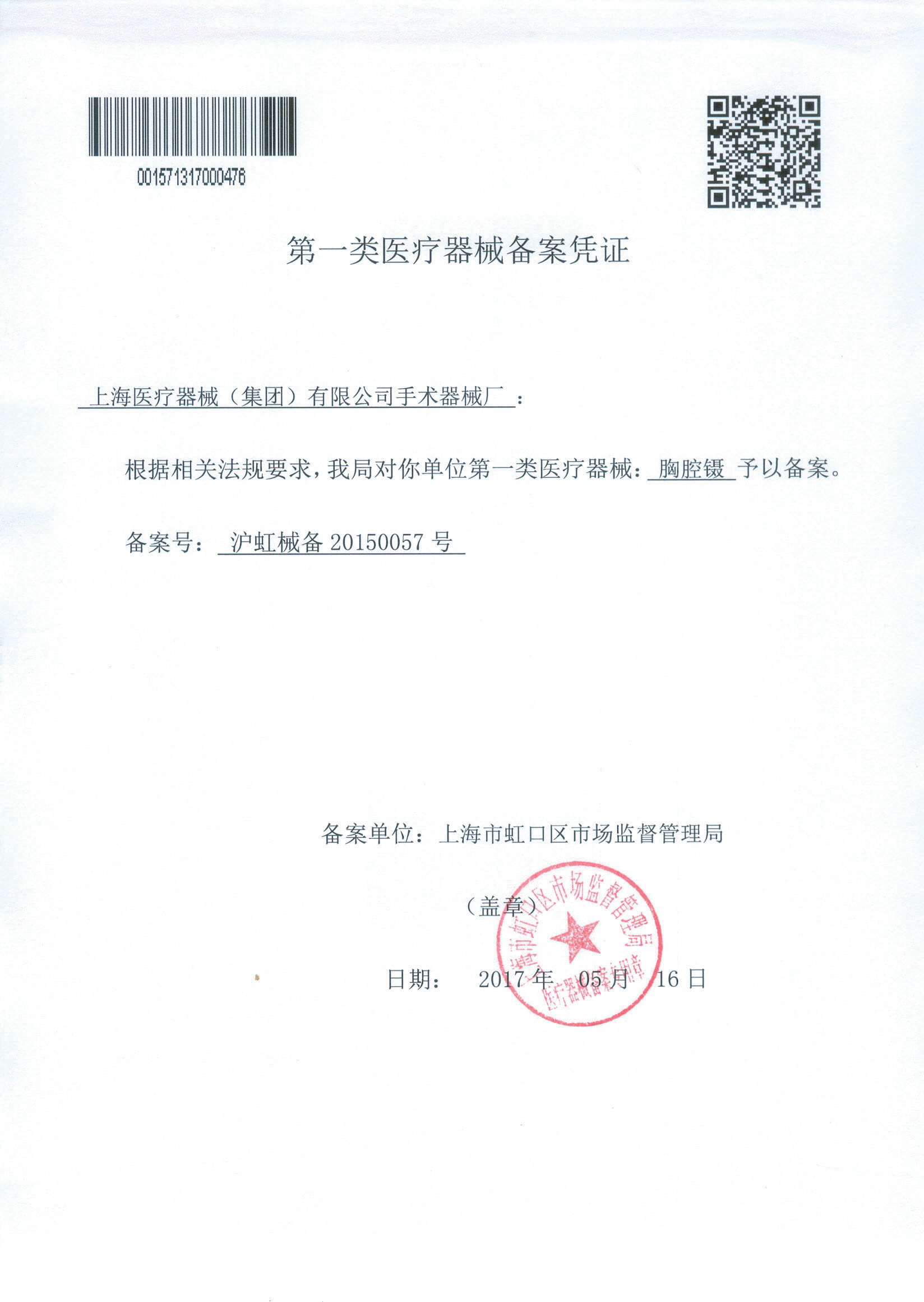 - 產(chǎn)品注冊證號:滬虹械備20150057號