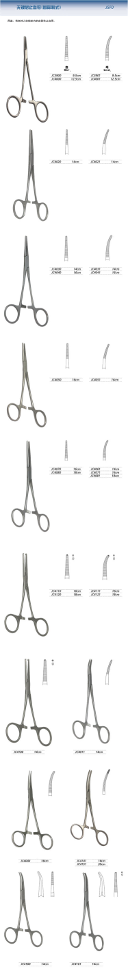 上?!敖痃娕啤睙o鍍層止血鉗產(chǎn)品表: