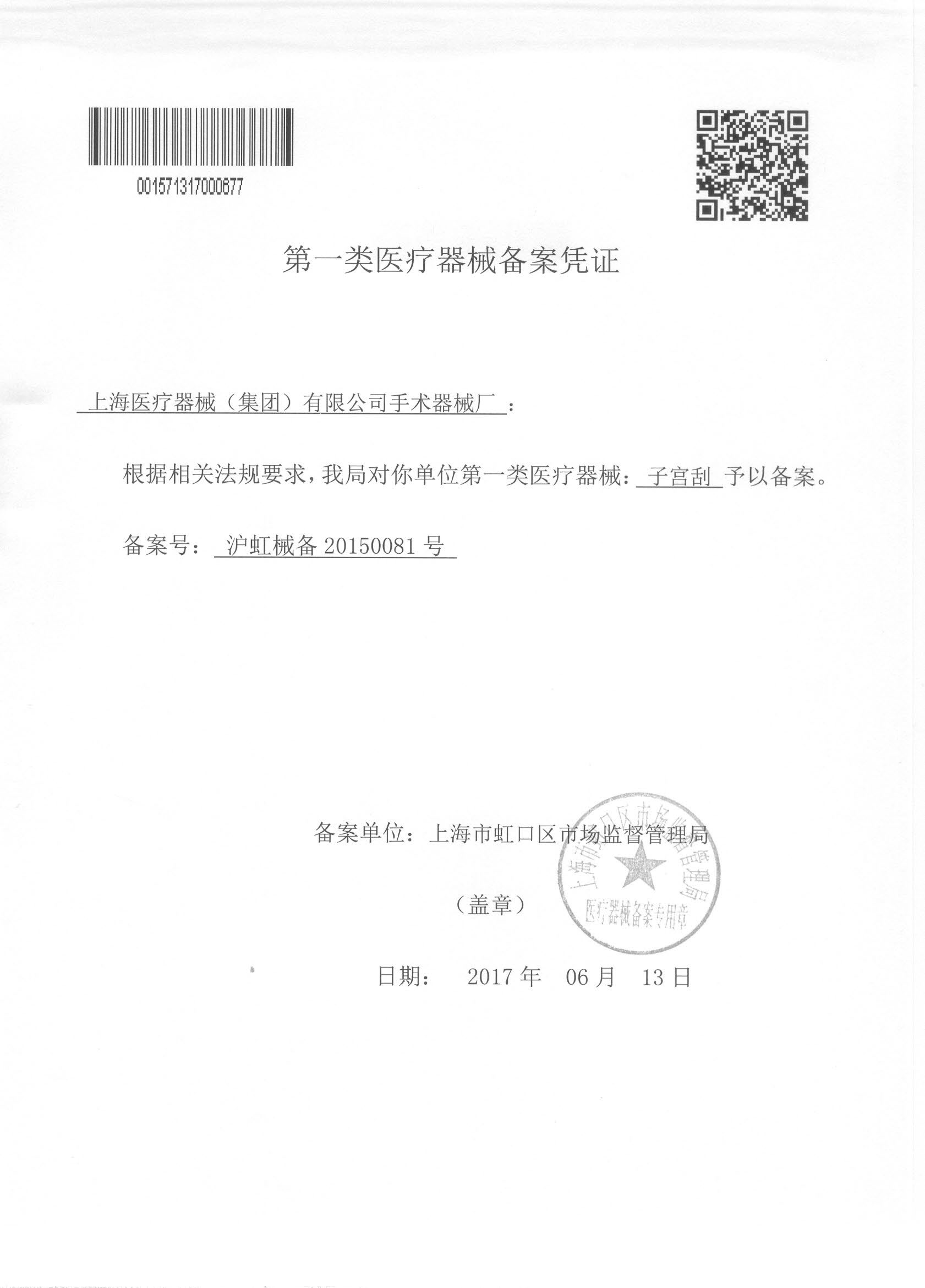 - 產(chǎn)品注冊證號:滬虹械備20150081號