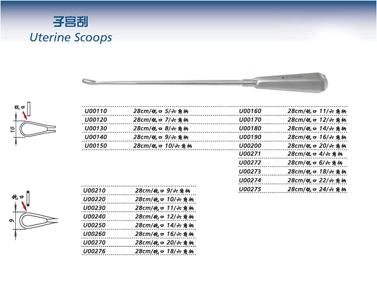金鐘子宮刮U00110 28cm銳口5 六角柄
