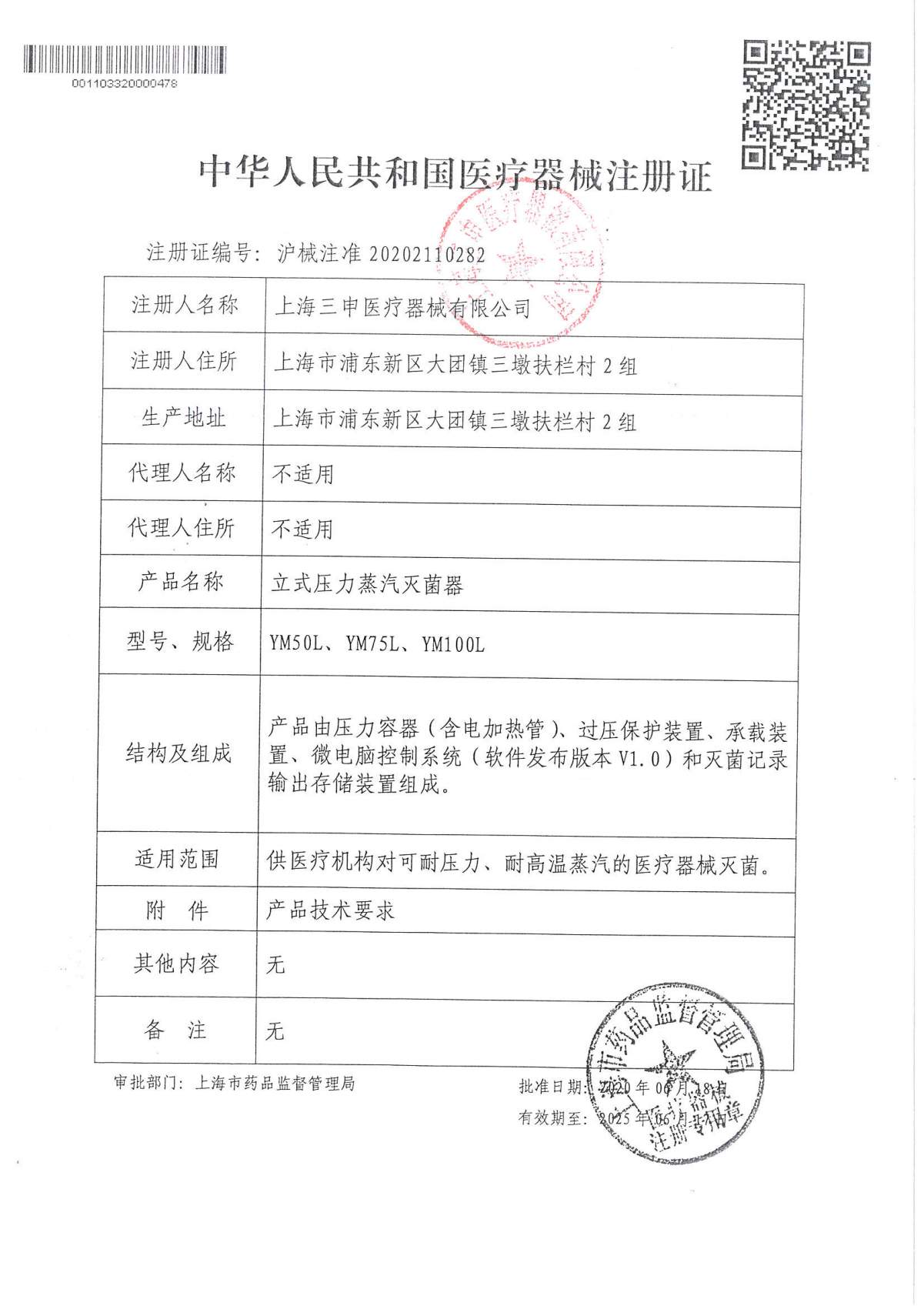 - 商品名稱(chēng):三申立式壓力蒸汽滅菌器 YM100L