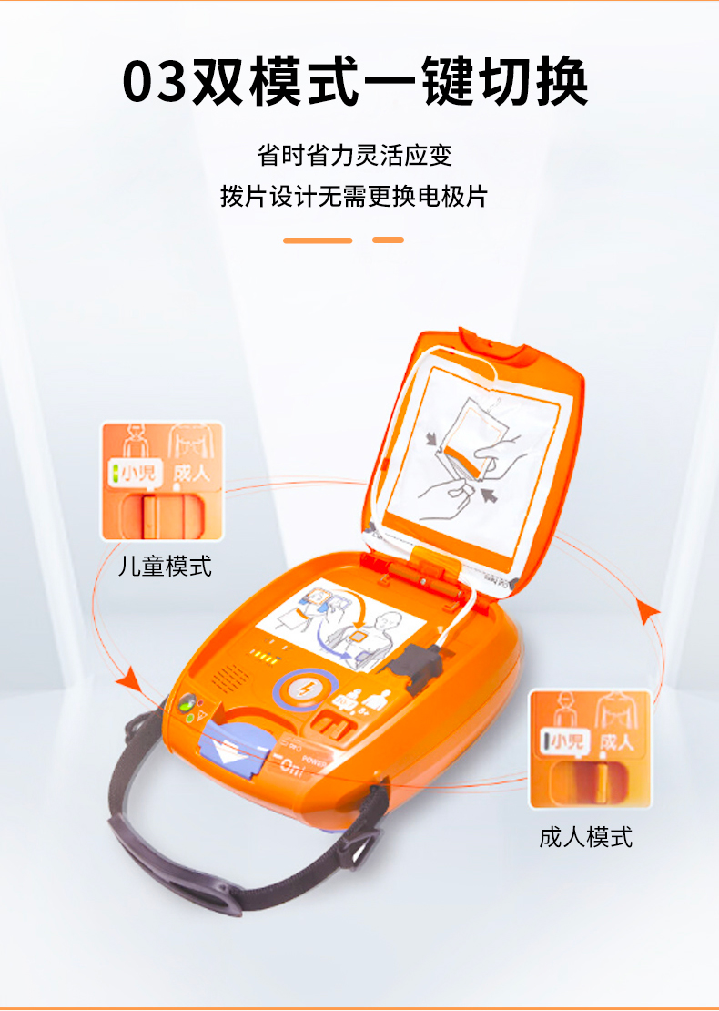 3.成人/兒童模式一鍵切換,無需更換電極片,及時(shí)應(yīng)對各種人群